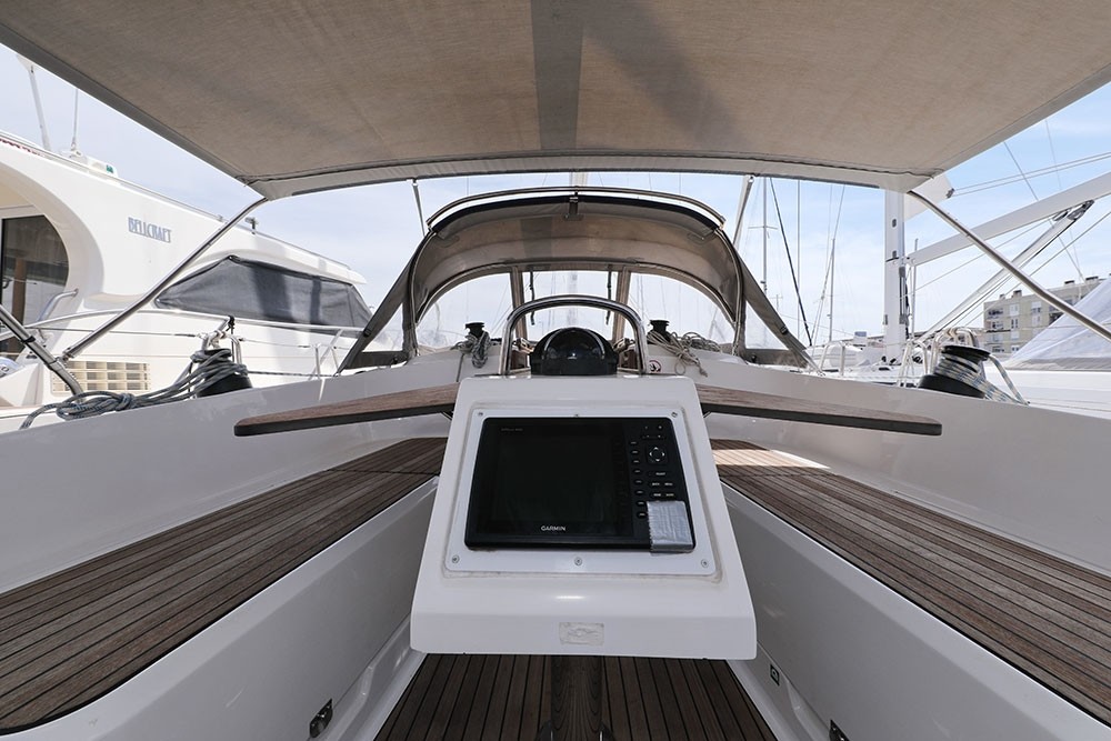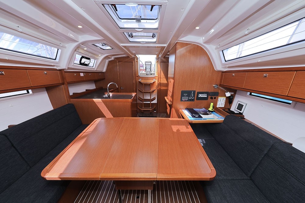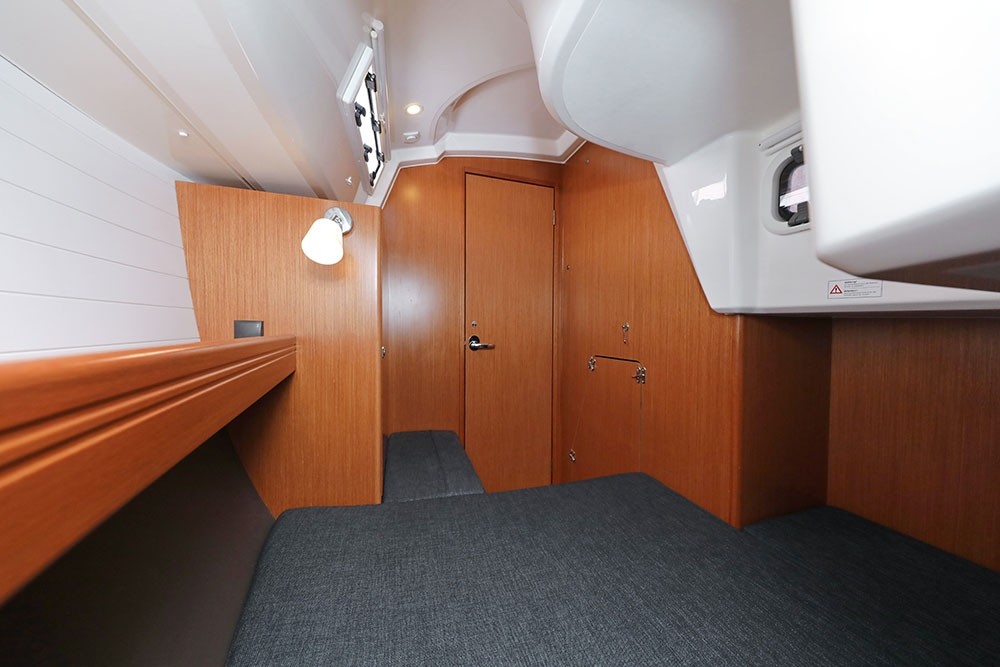 The 11.30 m long and 3.67 m wide Bavaria Cruiser 37 HaMa sailing yacht with 3 double cabins and 2 extra beds in the saloon is large enough for up to 8 people. The yacht is equipped with a toilet with a shower.