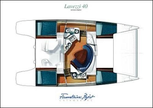 | Yacht model: | Fountaine Pajot Lavezzi 40 (4+2 cabin, 2 head) | Length: | 11.9 m | |||||