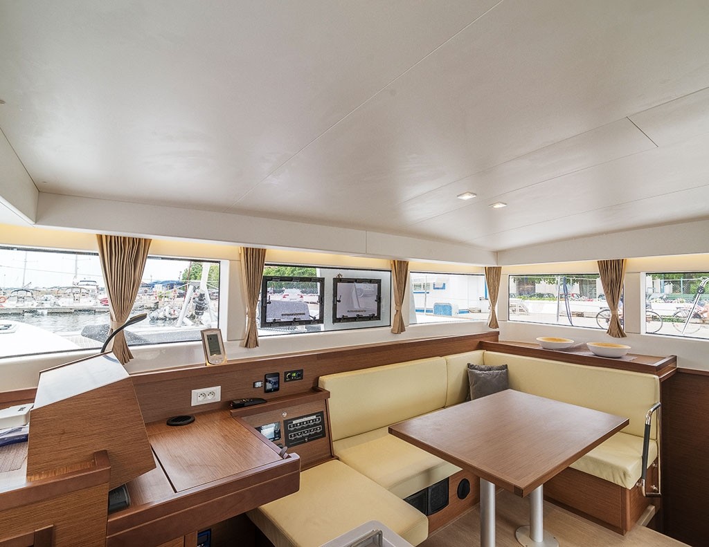 With an extra-long anchor chain of 100 meters, as well as seawater desalination plant and solar system, you can stay in the anchor bay as long as you like. Below deck you will find the usual quality of a Lagoon yacht. Beds with slatted frame, a fully equipped kitchen with porcelain dishes and coffee machine.